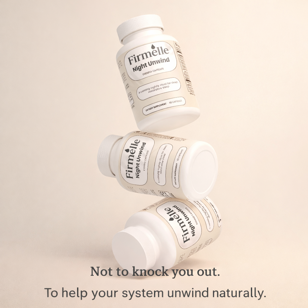 Firmelle™ Night Unwind is a calming nightly ritual designed to help your system unwind naturally, without knocking you out. Thoughtfully formulated with gentle, non-habit-forming ingredients, it supports deep, restorative rest as part of your evening routine. Wake up feeling rested, not groggy.